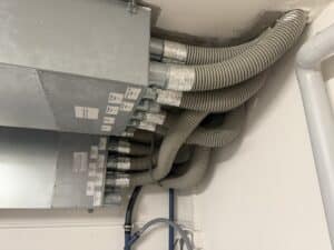 Erschwerend kam hinzu, dass die Leitungsführung der Luftrohre zur Hausverteilung nicht optimal ausgeführt war. Fachgerecht hätte man hier Verteilerkästen in der Wand vorgesehen und die Rohre sauber auf die Anschlüsse geführt.