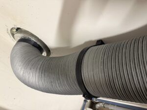 Nachdem die Verteiler neu positioniert waren, habe ich zunächst die Luftverteilung angeschlossen. Dazu wurden die vorhandenen Rohre entsprechend gekürzt und vorsichtig in Form gebracht. Ziel war es, möglichst weiche Übergänge zu schaffen und harte Kanten oder enge Biegeradien zu vermeiden, um Strömungsgeräusche und Druckverluste gering zu halten.