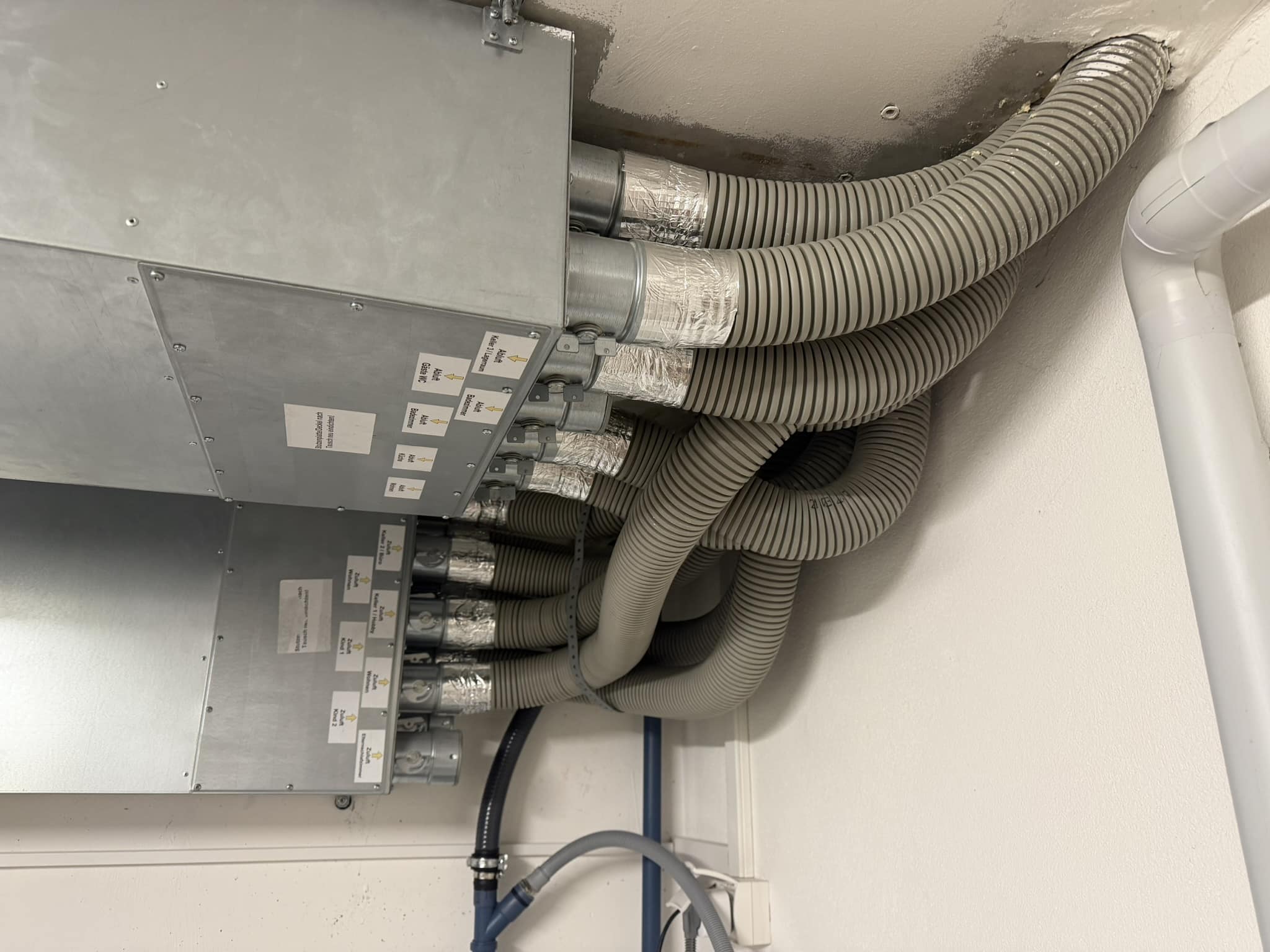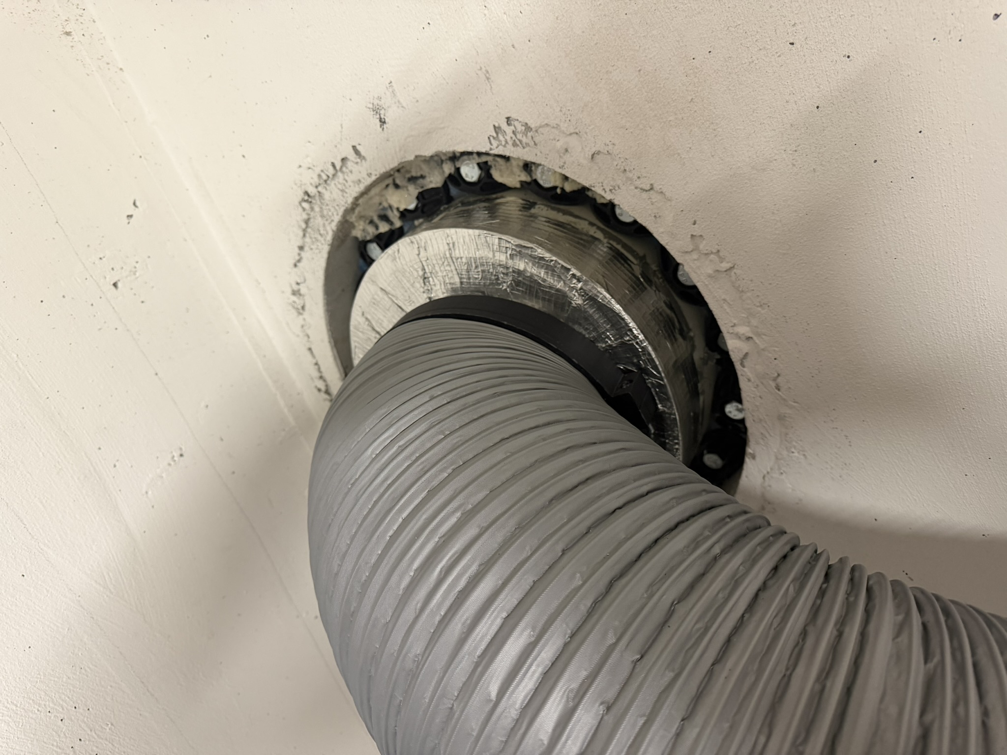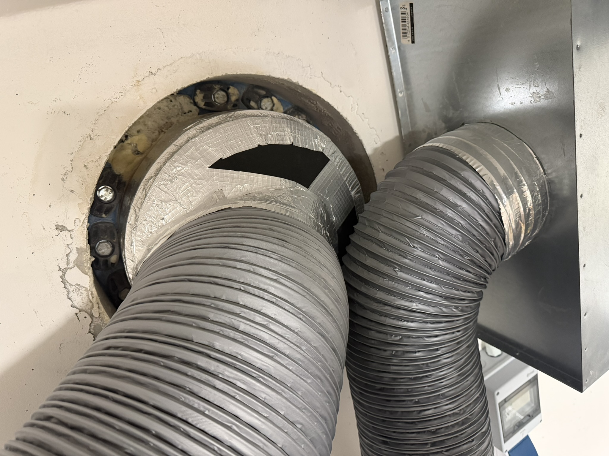 Nachdem die Verteiler neu positioniert waren, habe ich zunächst die Luftverteilung angeschlossen. Dazu wurden die vorhandenen Rohre entsprechend gekürzt und vorsichtig in Form gebracht. Ziel war es, möglichst weiche Übergänge zu schaffen und harte Kanten oder enge Biegeradien zu vermeiden, um Strömungsgeräusche und Druckverluste gering zu halten.